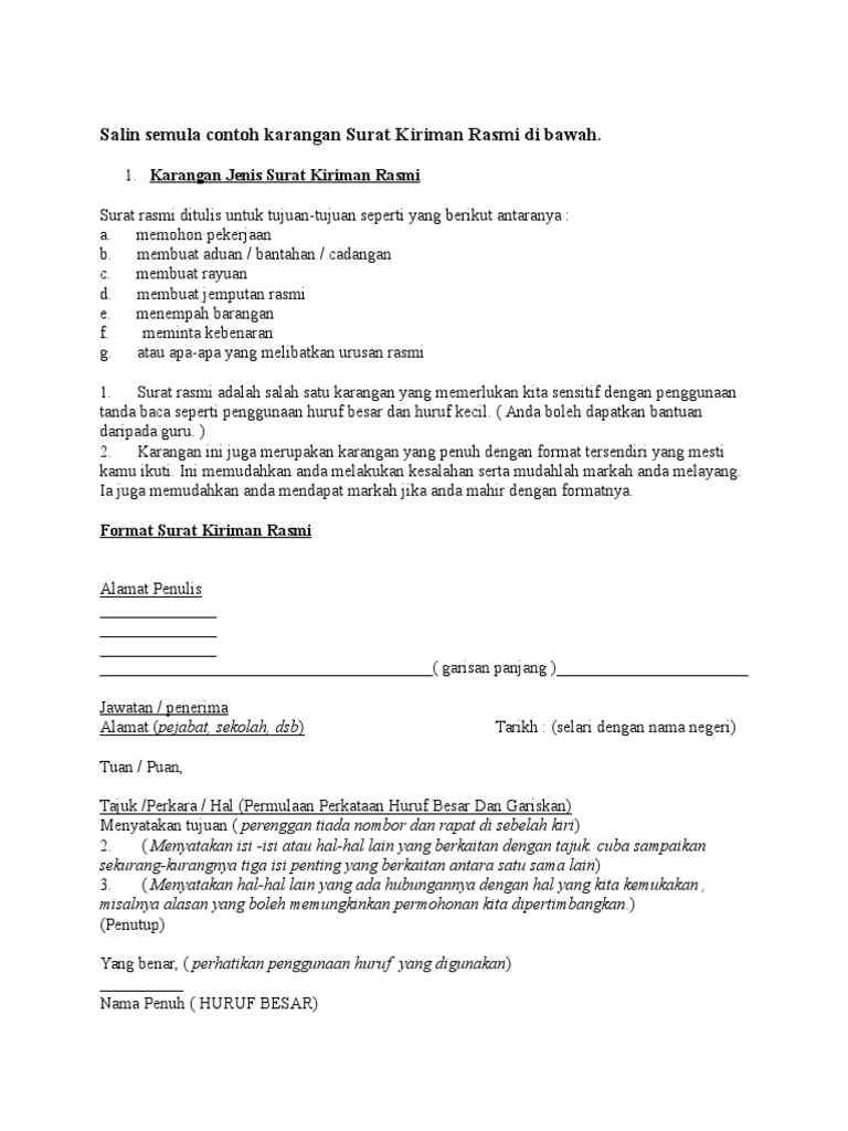 Tulis karangan jenis cerita yang bertajuk Diri Saya. Im a 50 year old self. 4 Kata sapaan atau panggilan hormat rapat ke garisan tepi dan koma 5 Perenggan pertama menyatakan tujuan surat itu ditulis.